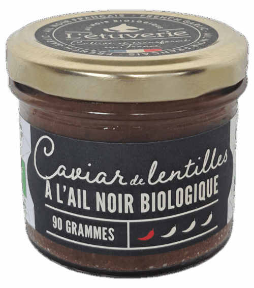 The black garlic is then mixed with cooked organic lentils, white garlic, chili, pepper, salt, and local sunflower oil to create a smooth and creamy lentils spread.